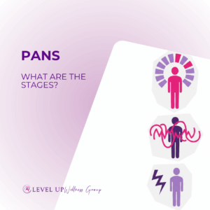 The stages of Pediatric Acute-onset Neuropsychiatric Syndrome (PANS) begin with a sudden onset of severe symptoms, followed by an escalation phase where new symptoms emerge. If left untreated, it can enter a chronic phase. With a correct diagnosis, the intervention and healing phase begins, leading to recovery, though relapse is possible.